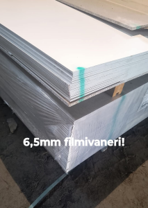 Pinnoitettuja eri värejä, valkoista ja harmaata 18mm filmivaneria löytyy noin 800m2 (6.9). 1500×3000 100€/kpl, 1220×2440 66€.